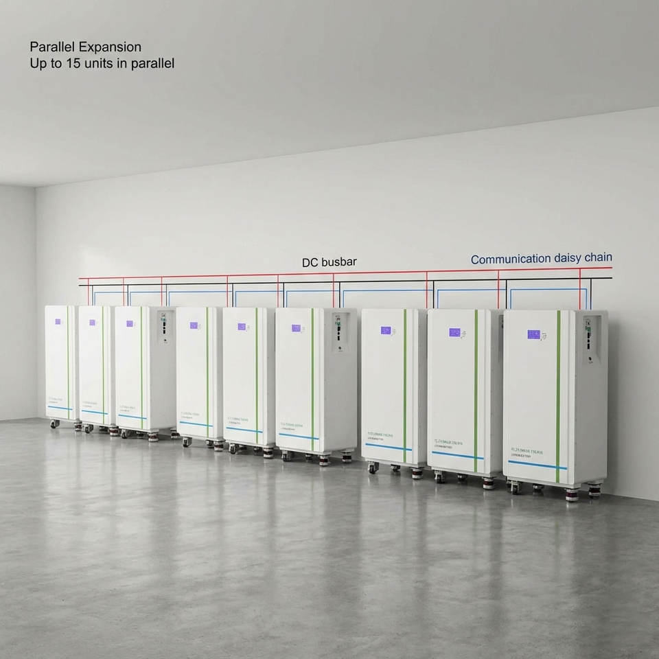 Gabinete de Almacenamiento de Energía Móvil con Ruedas, 48kWh 51.2V, Batería Residencial LiFePO4, Sistema de Respaldo Solar para el Hogar