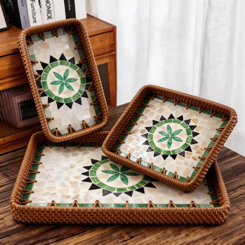 Mejor bandeja de servir india de ratán, bandeja redonda personalizada de madera natural para uso en el hogar, hoteles y restaurantes. Personaliza tamaño y forma.
