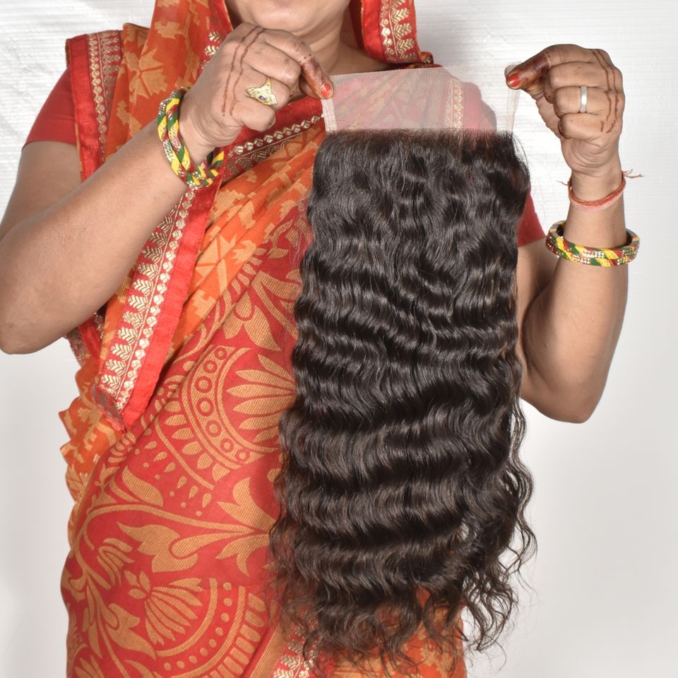 Cabello humano doblemente estirado de proveedor indio 2026, cierre rizado de alta calidad, material de uso industrial, precio al por mayor, en venta.