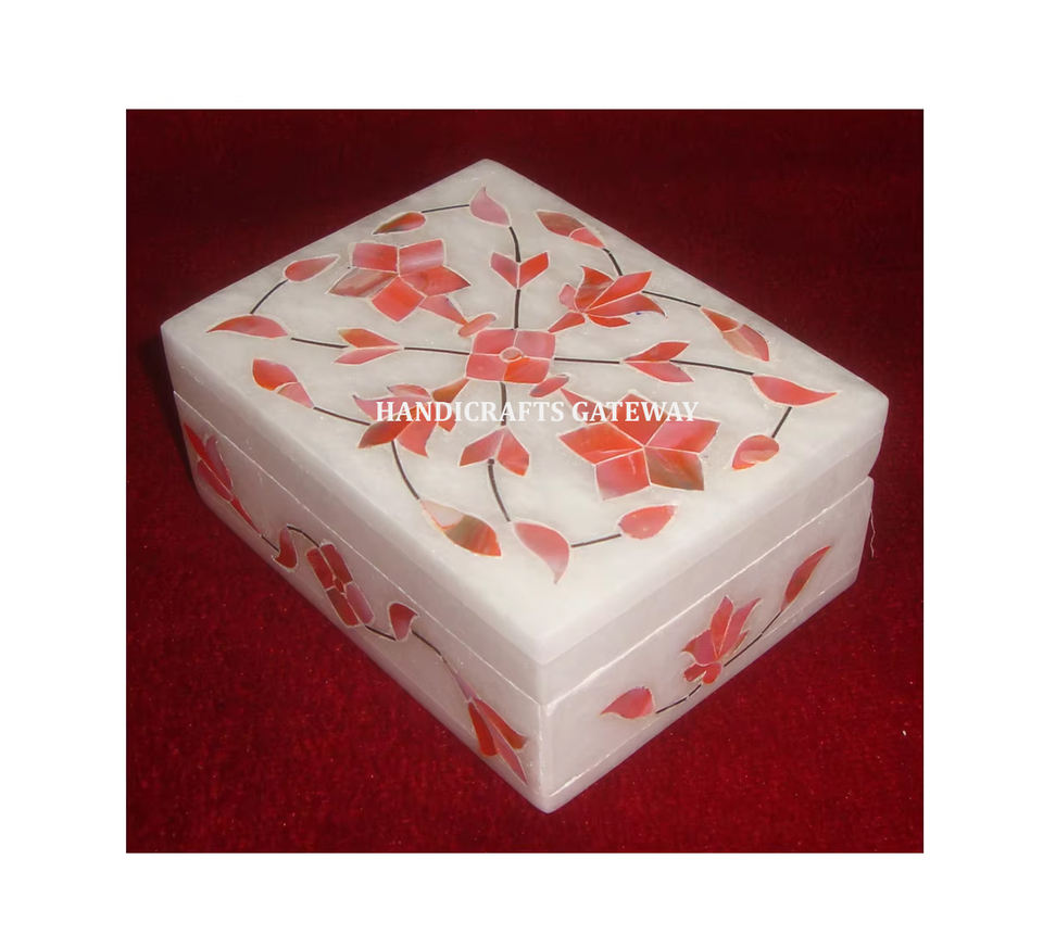 El Mejor Producto con incrustaciones para regalos de boda, joyero con incrustaciones de forma Rectangular de nácar de mármol blanco Natural