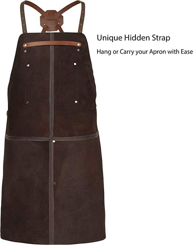 Mejor delantal de cuero para cocinar, delantal de cuero auténtico vintage verde para soldar, delantal de cuero ignífugo, último modelo.