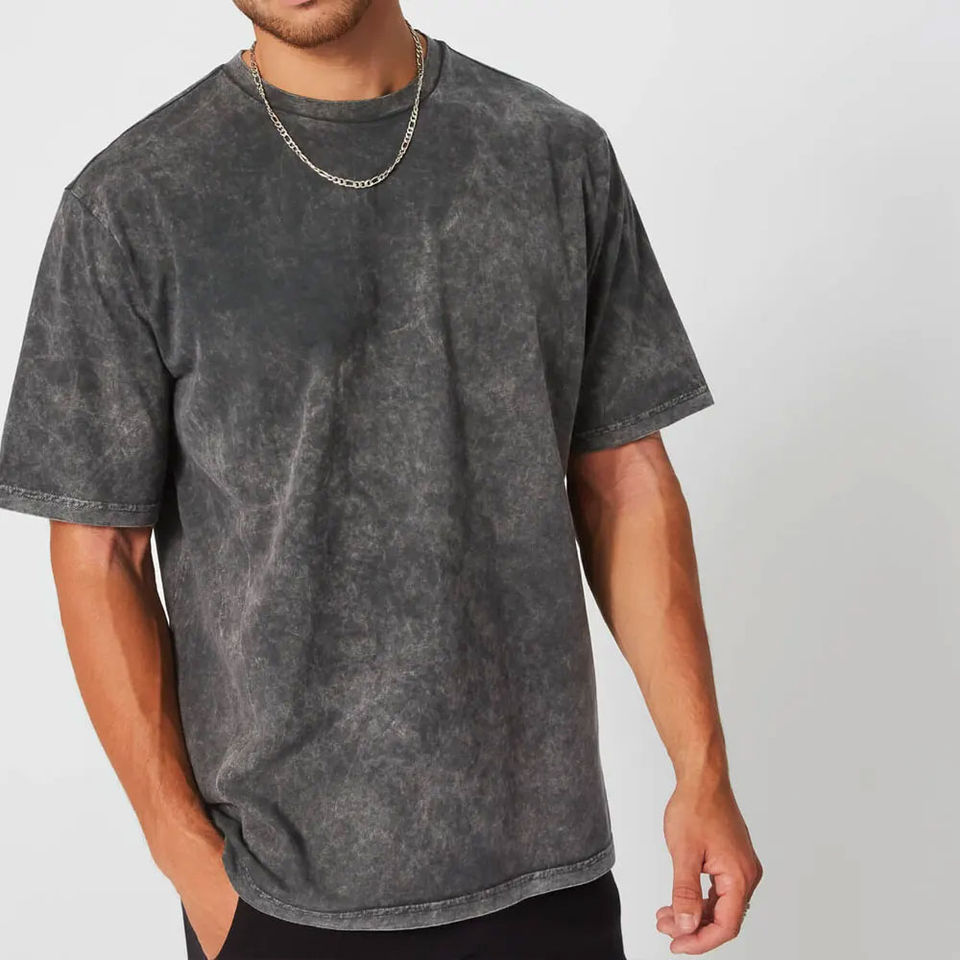 Camiseta Vintage de Color Sólido con Lavado Ácido, MOQ Bajo, 100% Algodón, Cómoda, Color Personalizado, Alta Calidad, para Hombre, 220g