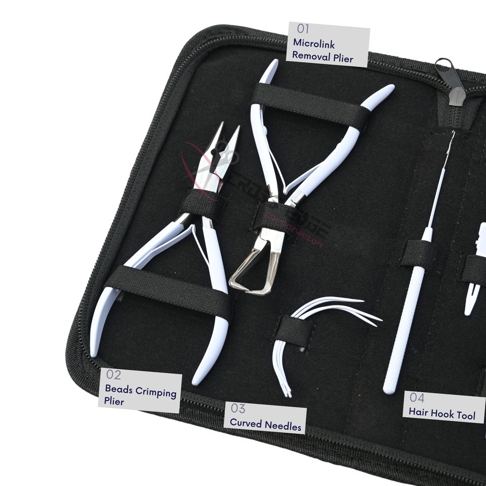 Palabras clave:Kit de herramientas para extensiones de cabello, alicates de engarzado de microperlas blancas
