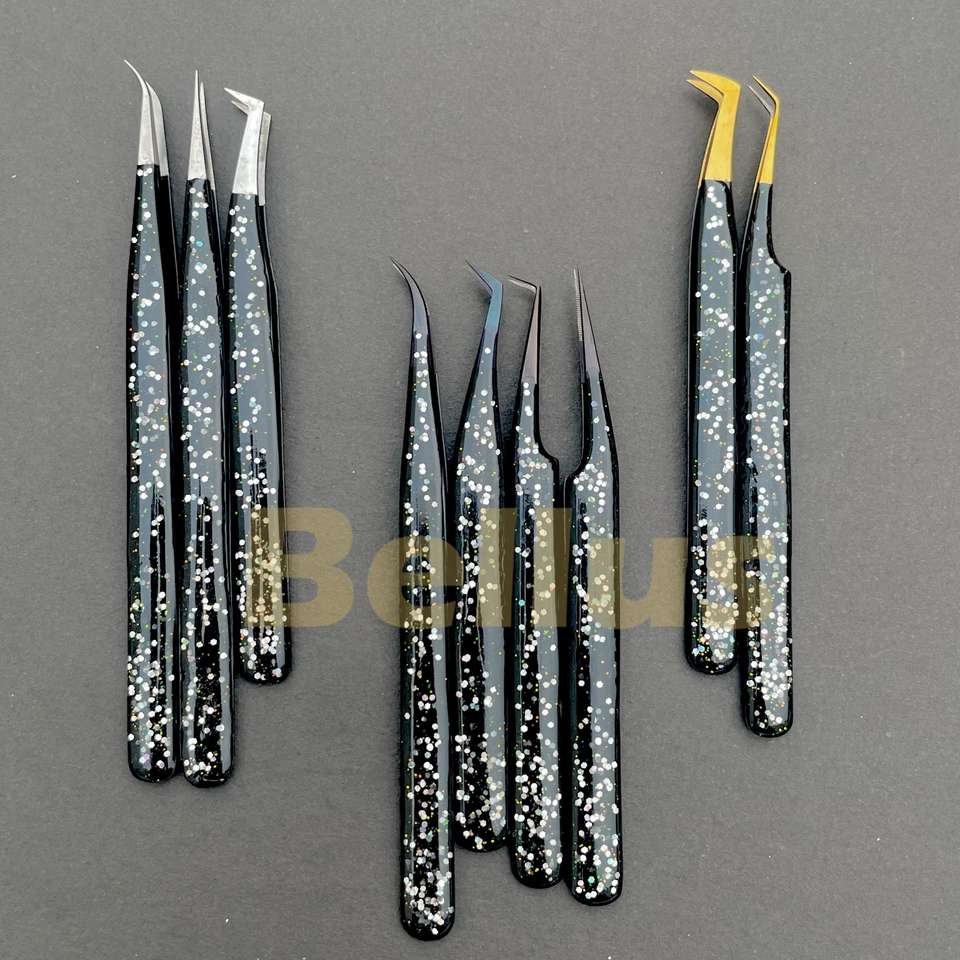 Las mejores pinzas de pestañas de etiqueta privada Nano Tip, pinzas de extensión de pestañas de 90 grados, punta de fibra de agarre de diamante