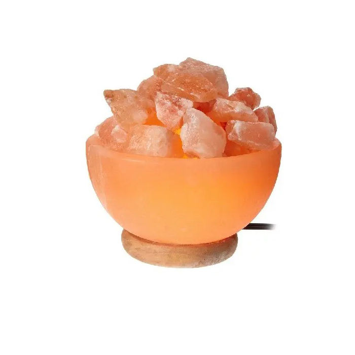 Lámpara de Sal del Himalaya de Color Natural con Base de Madera Pulida, Bolas de Masaje, Diseño de Cuenco de Fuego, Luz Nocturna, Hecha a Mano