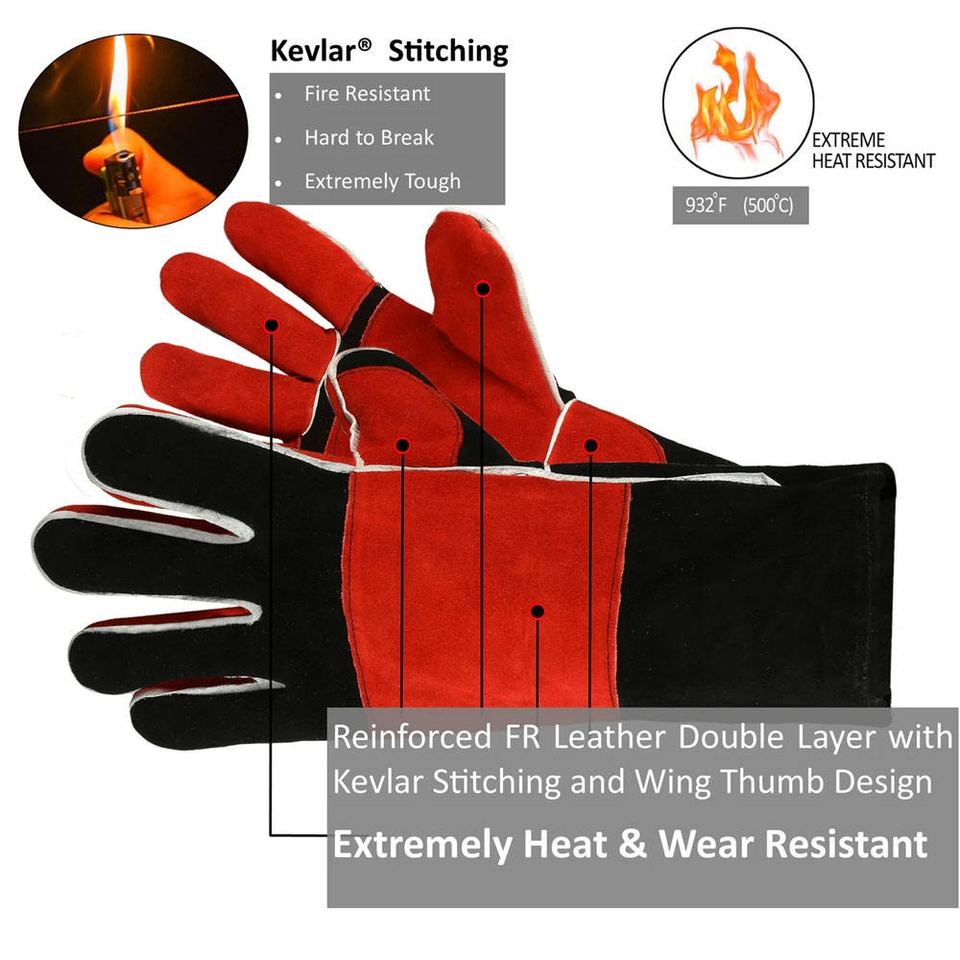 Guantes de Soldadura Reforzados de Piel de Vacuno de Primera Calidad, con Puño de Seguridad, para Uso General, Resistentes al Fuego y al Calor