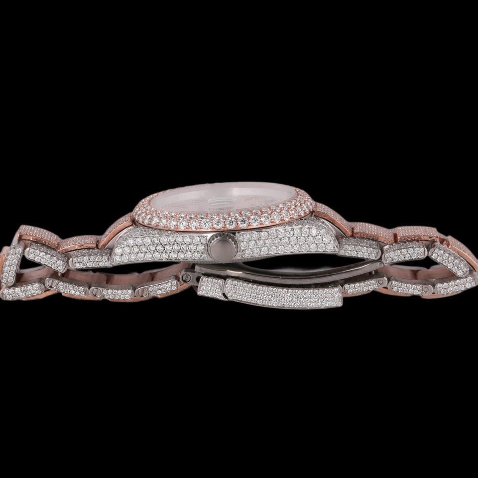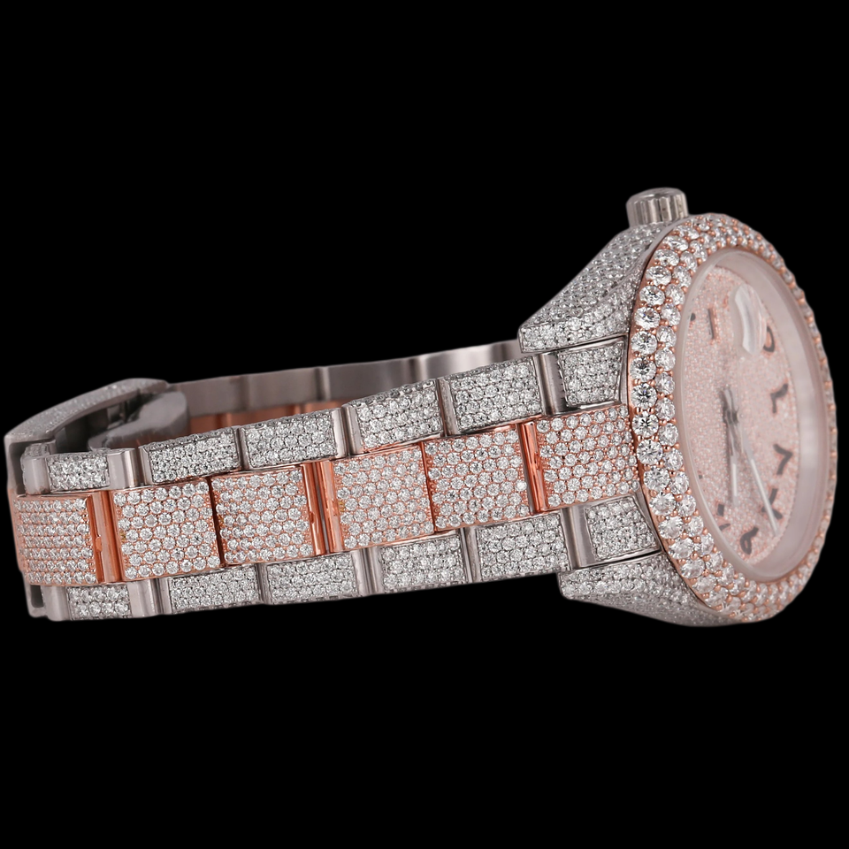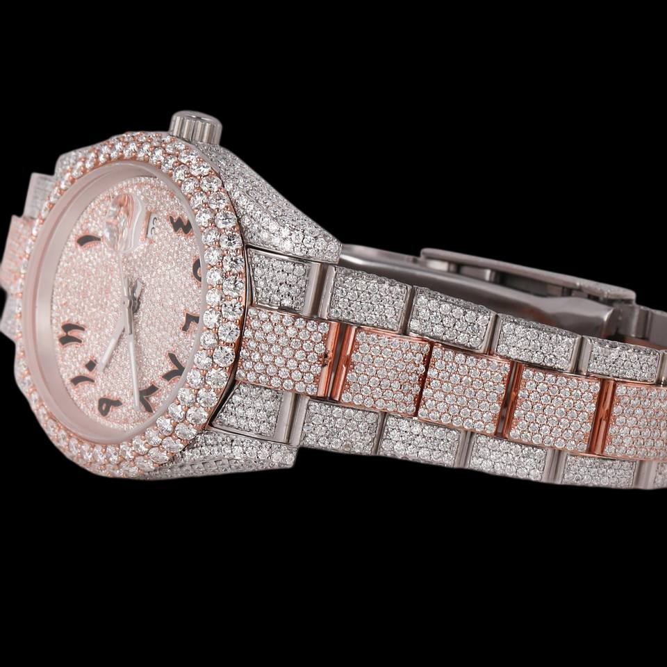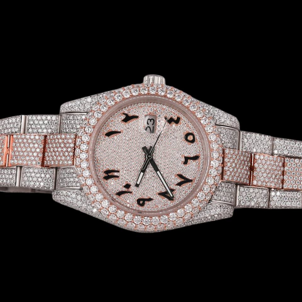 Reloj de Pulsera Personalizado de Dos Tonos con Esfera Redonda y Números Arábigos, con Moissanita, Estilo Hip Hop, Totalmente Cubierto de Piedras, a la Moda