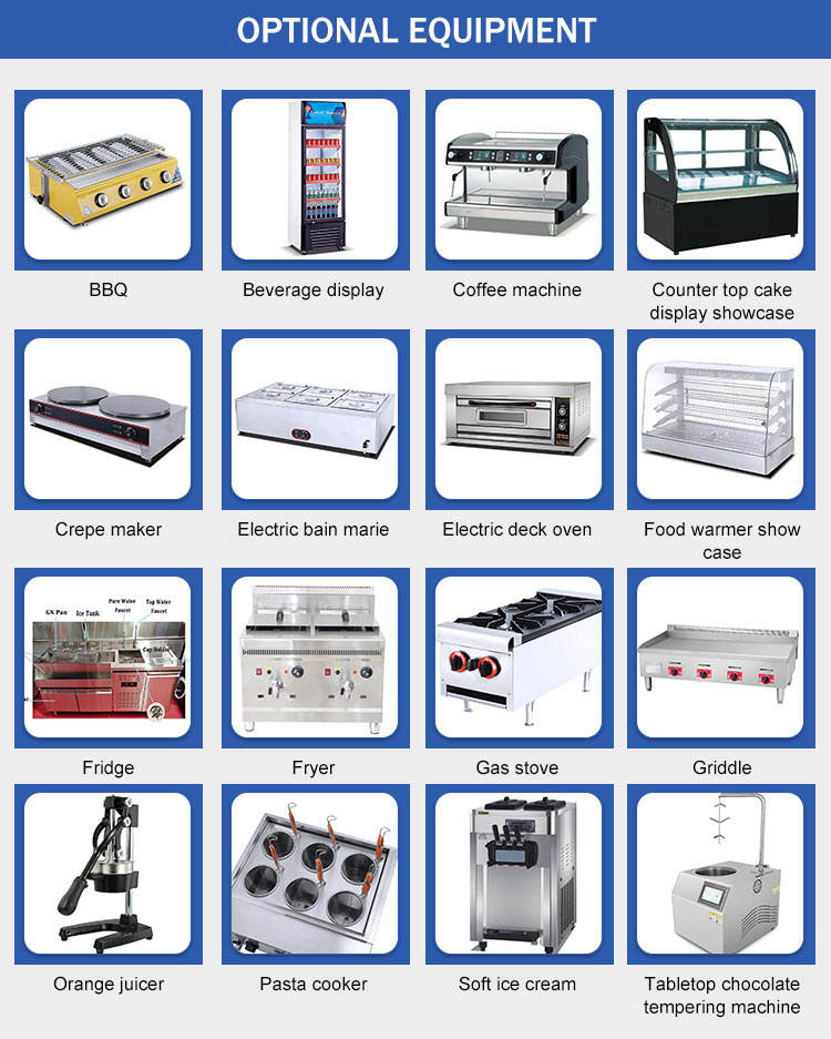Estufa Quemador, Flat-top Grill, Bar de Ensaladas, Freidora profundaEquipo de cocina