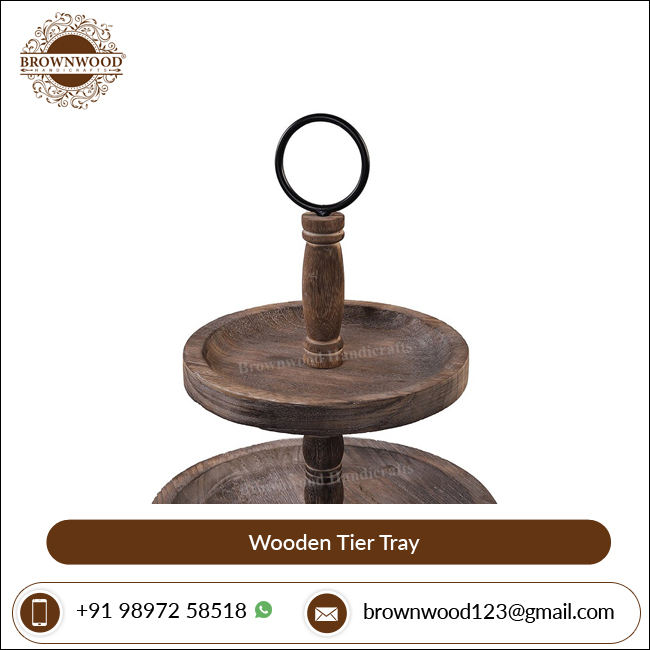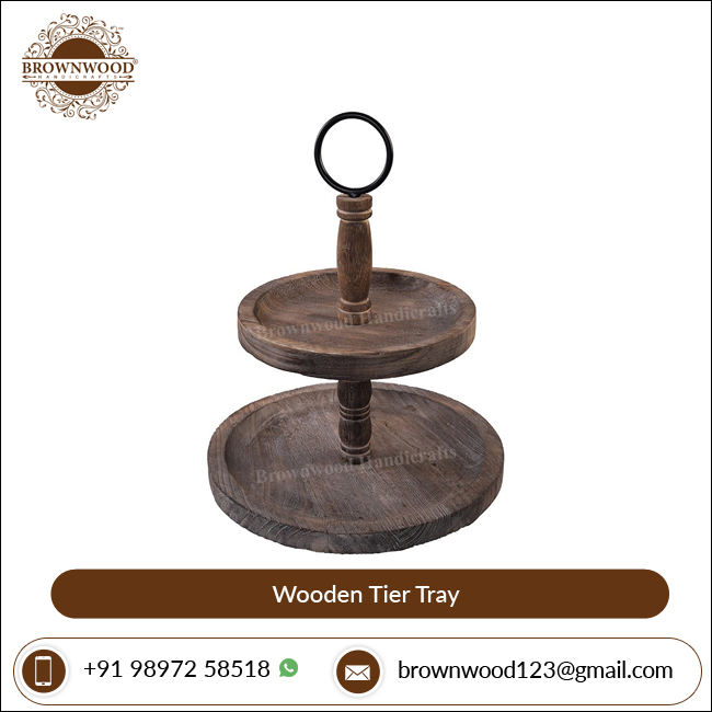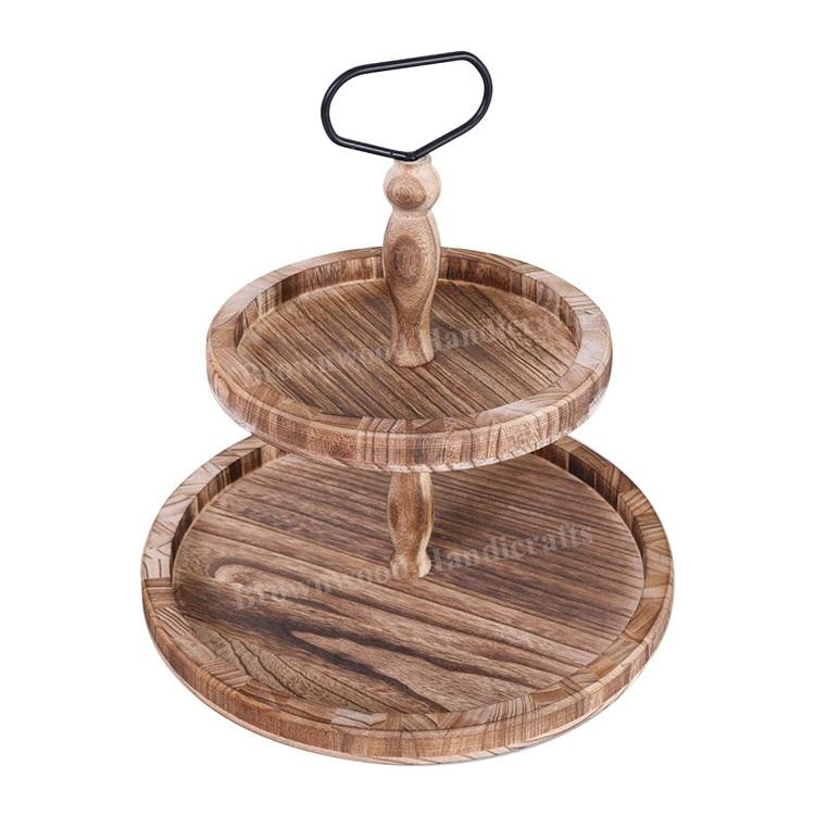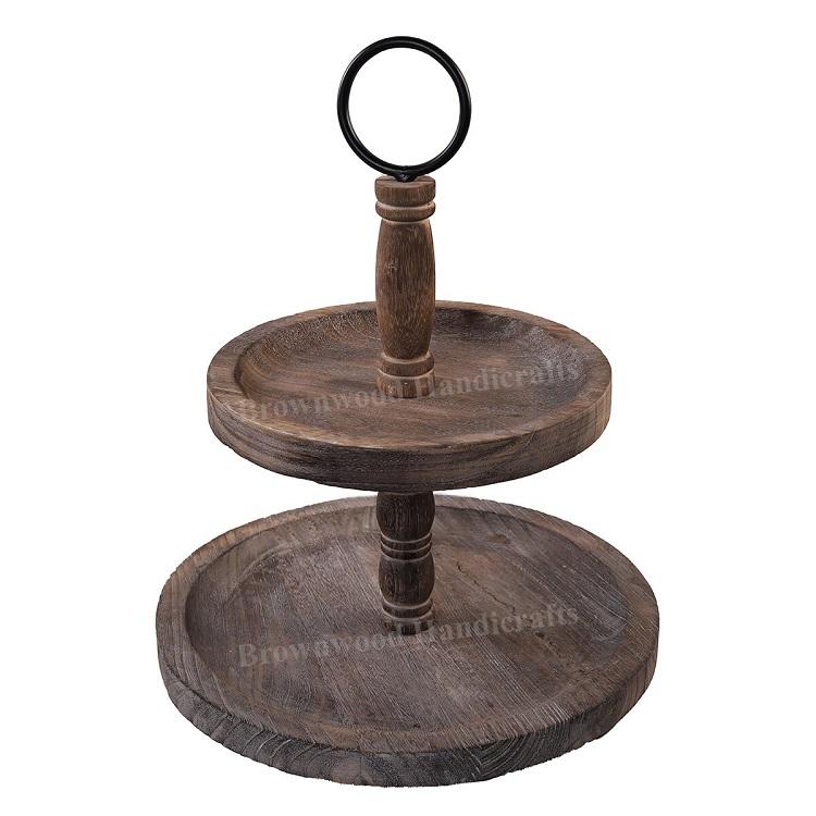 Bandeja Redonda Decorativa de 2 Niveles Hecha a Mano con Asa de Hierro, al Mejor Precio, en Cantidad al por Mayor para Compra al por Mayor, Alta Calidad