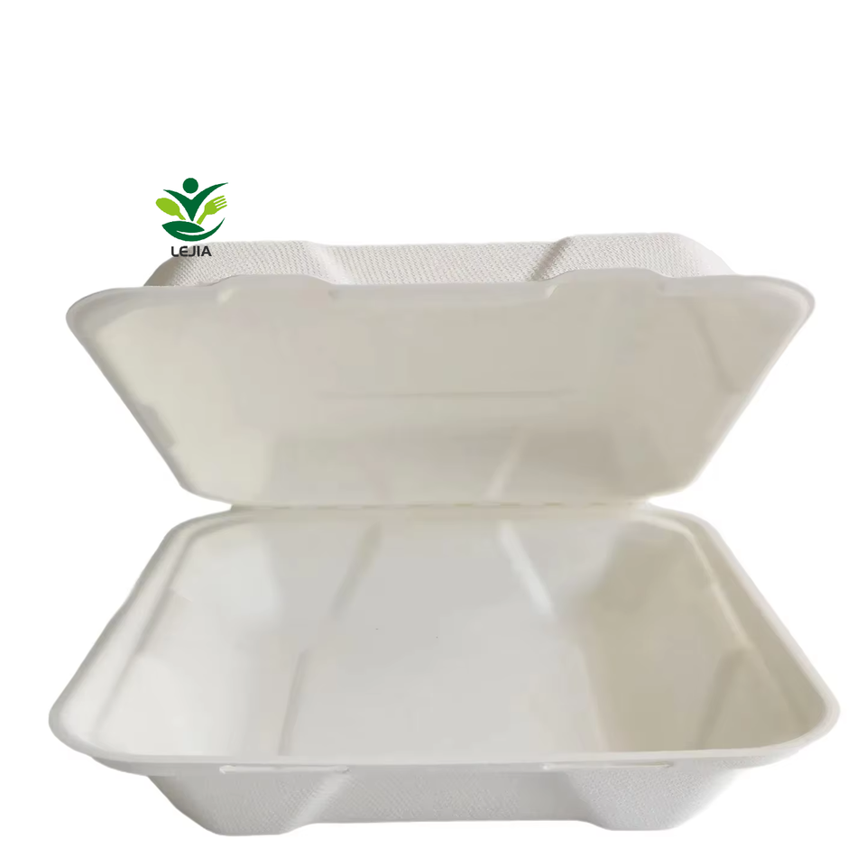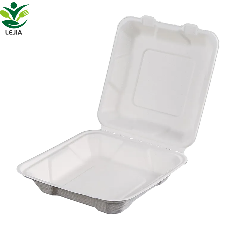 8 pulgadas de caña de azúcar desechables de pulpa de bagazo Clamshell cajas de almuerzo de papel