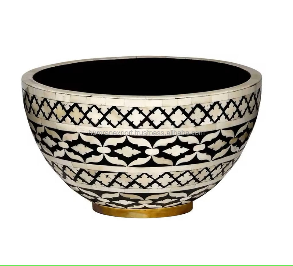 Mejor precio 2024 Tendencia Nuevo diseño moderno Cuencos con incrustaciones de hueso redondo hechos a mano Estilo vintage de Humran Export India para fiestas