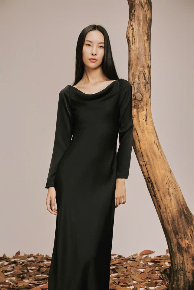 Mejor precio Encantadora colección de otoño Encanto Vestido negro Señoras Mujeres Estilo elegante Servicios ODM Hecho en Vietnam