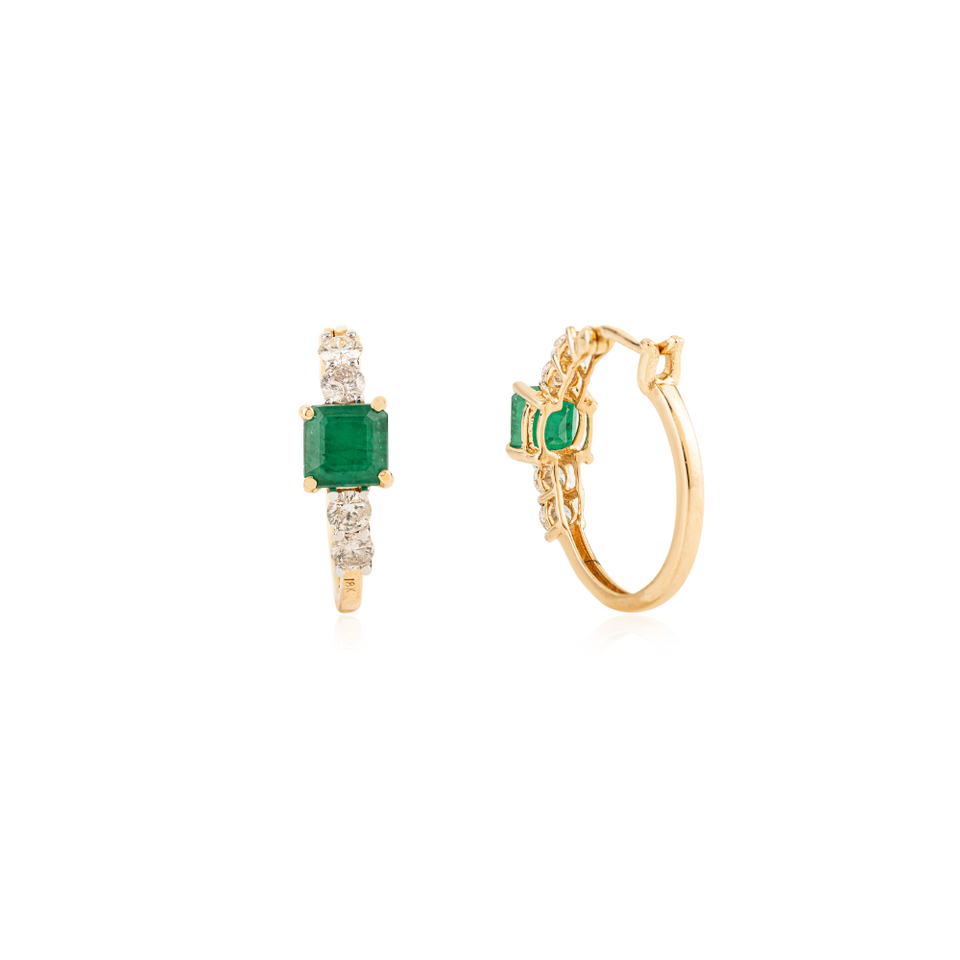 Pendientes de Aro de Oro Amarillo de 18K con Diseño Clásico, Corte Cuadrado Fino, Esmeralda y Diamante, Joyería de Moda para Uso Diario, al Mejor Precio