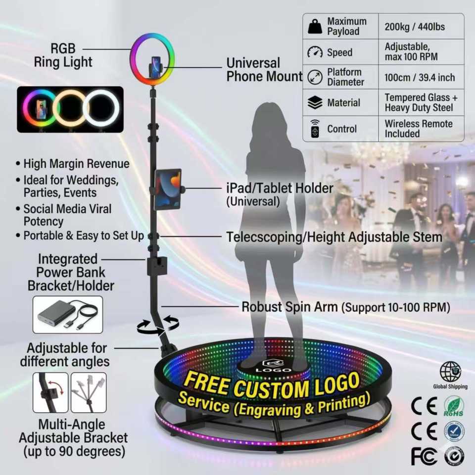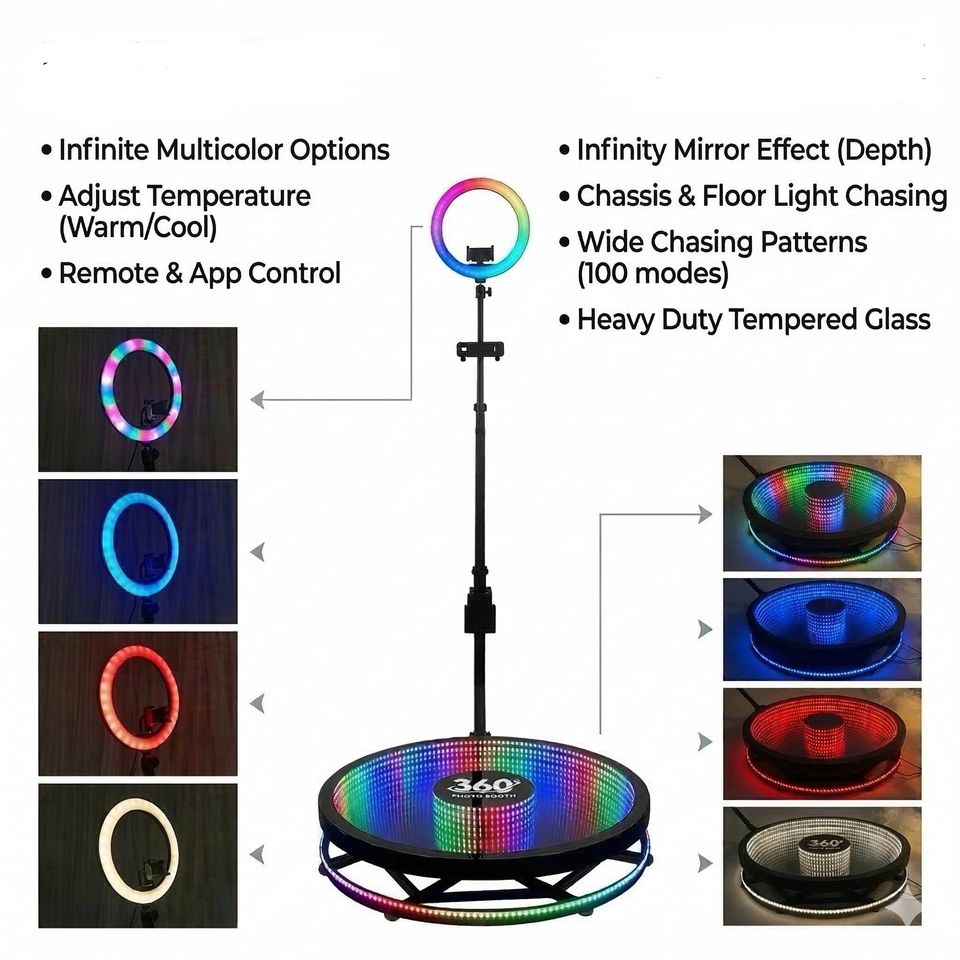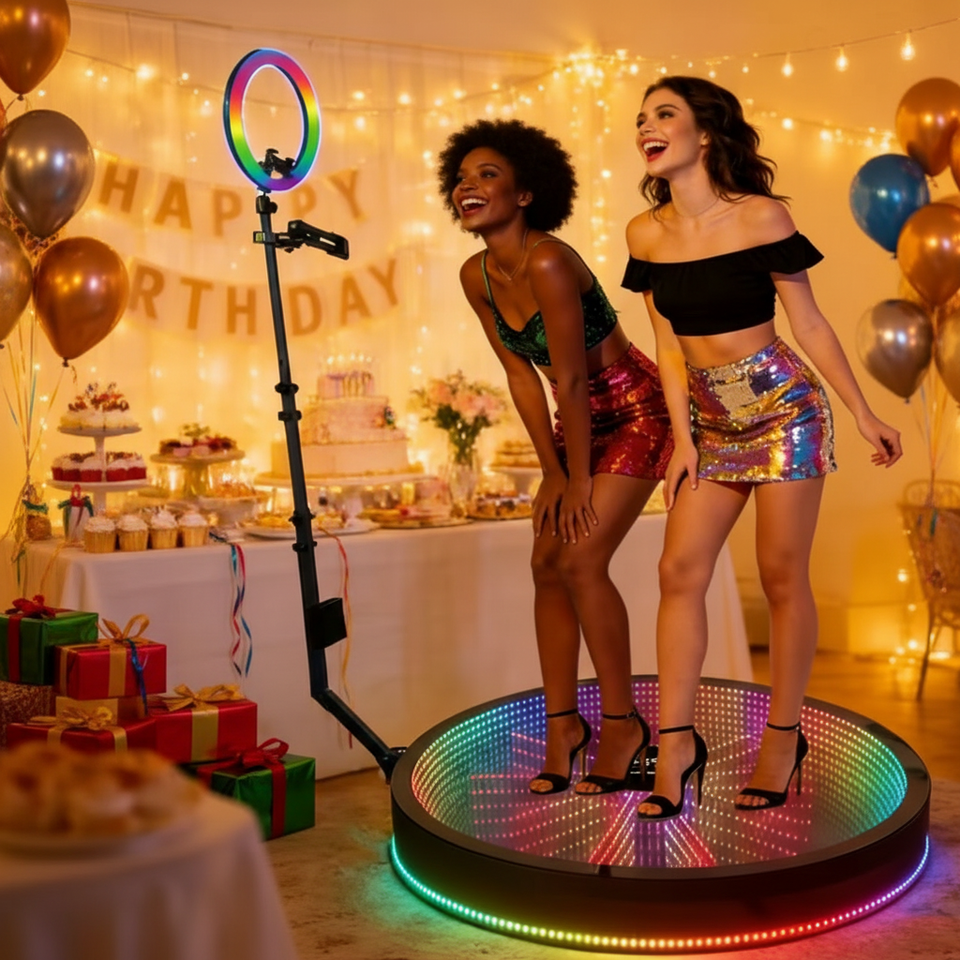 Cabina de Fotos 360 Personalizada al Mejor Precio, Cabina de Fotos Giratoria Portátil para Selfies, con Iluminación LED Infinita de Cristal Floral, Cámara Móvil para Fiestas