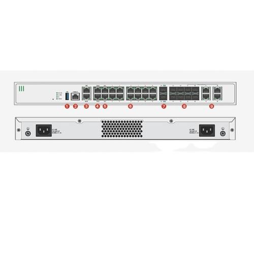 22X puertos GE RJ45 (incluyendo 2x puertos WAN, 1x DMZ)