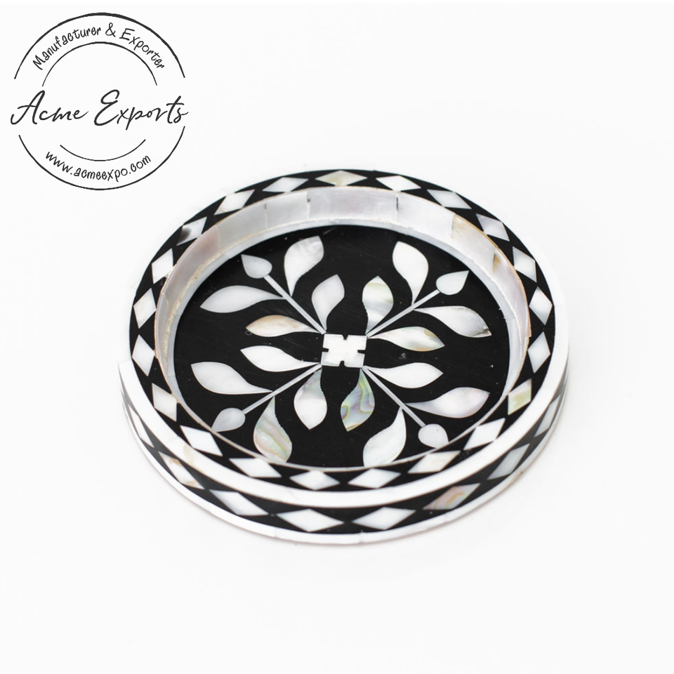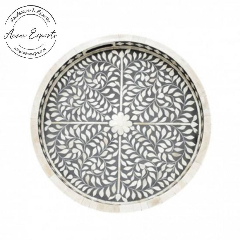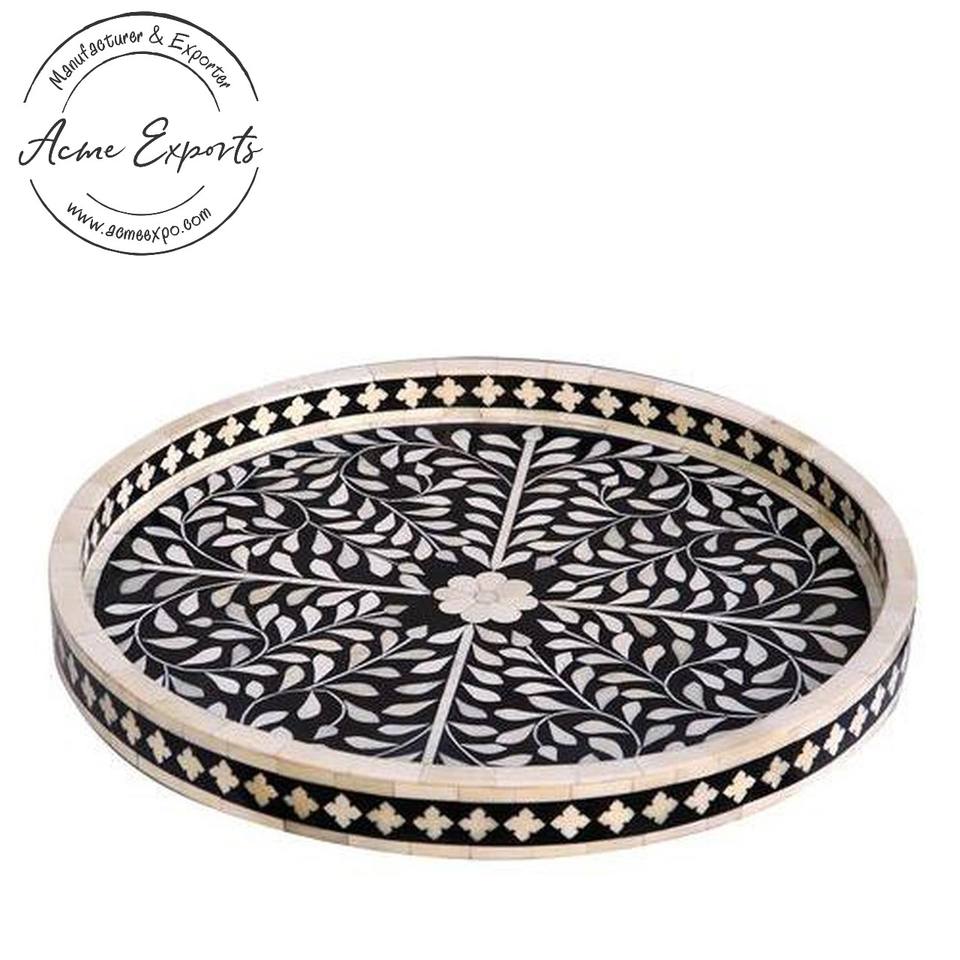 Elegante bandeja redonda de madera para servir, Plato decorativo duradero con diseño en blanco y negro para comedor y decoración del hogar