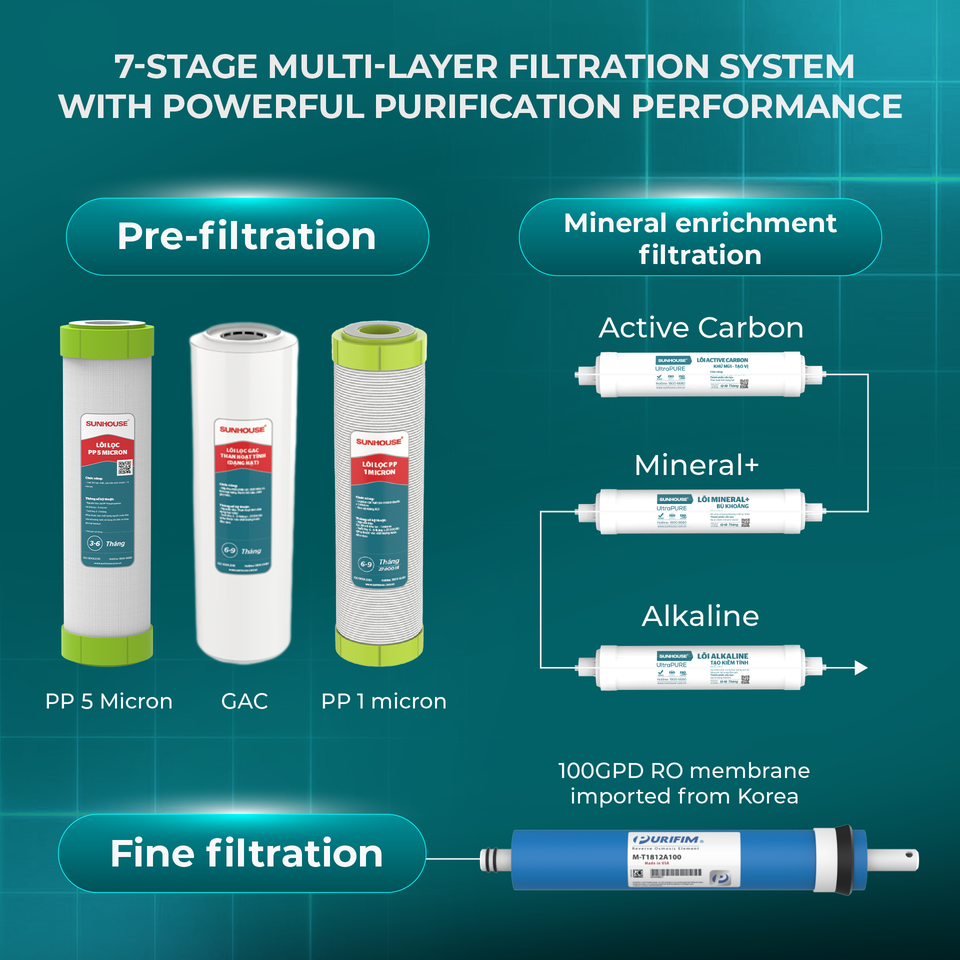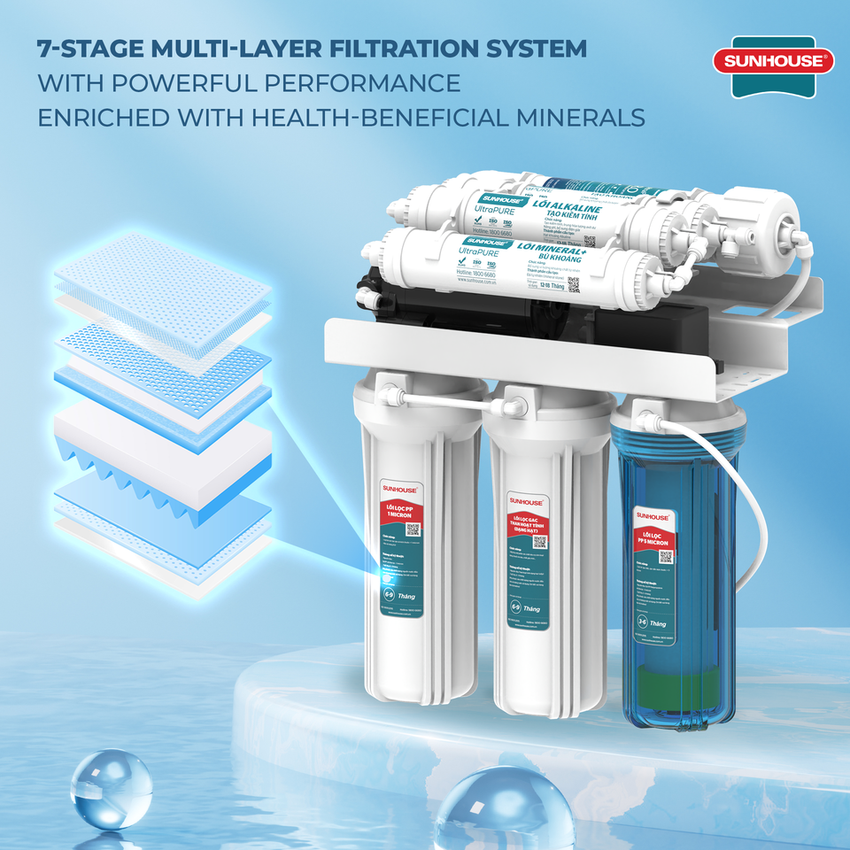 Purificador de agua RO de 7 etapas de alta calidad al mejor precio, ósmosis inversa para uso doméstico Vietnam SUNHOUSE personalizado