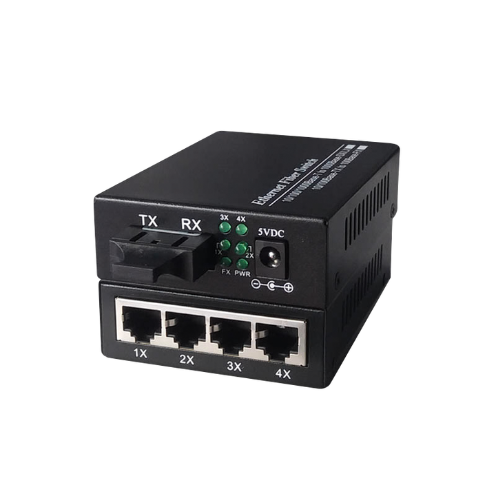 Mejor Precio, Gran Oferta: Convertidor de Medios de Fibra Óptica Dual 4 RJ45+10/100M, Transceptor de Medios Ópticos Monomodo de Fibra Dual