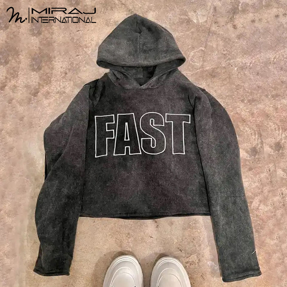 Product Name::Acid Washed Distressed Embroidery Hoodie