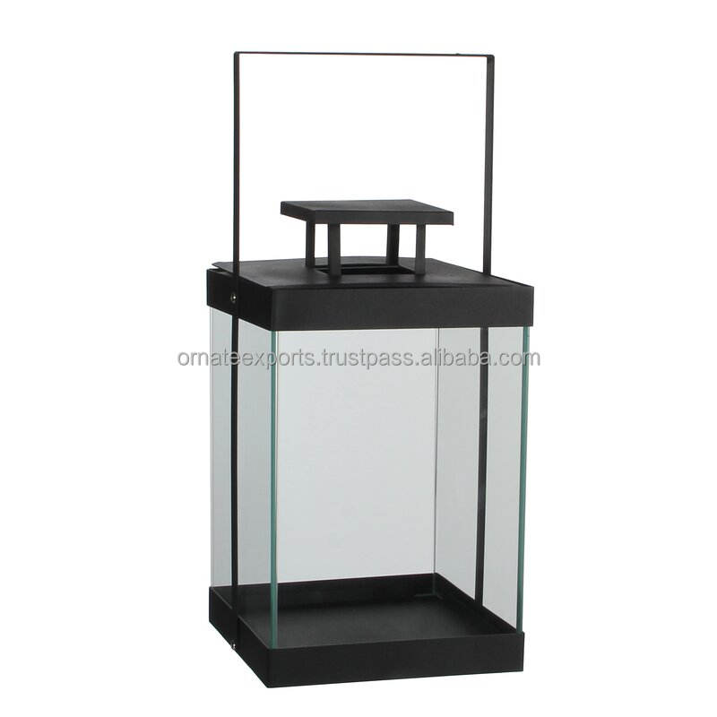 Lámpara de Hierro y Vidrio con Recubrimiento de Polvo Negro Mate, con Asa, Decoración Navideña para el Hogar, Hecha a Mano, Duradera, al Mejor Precio