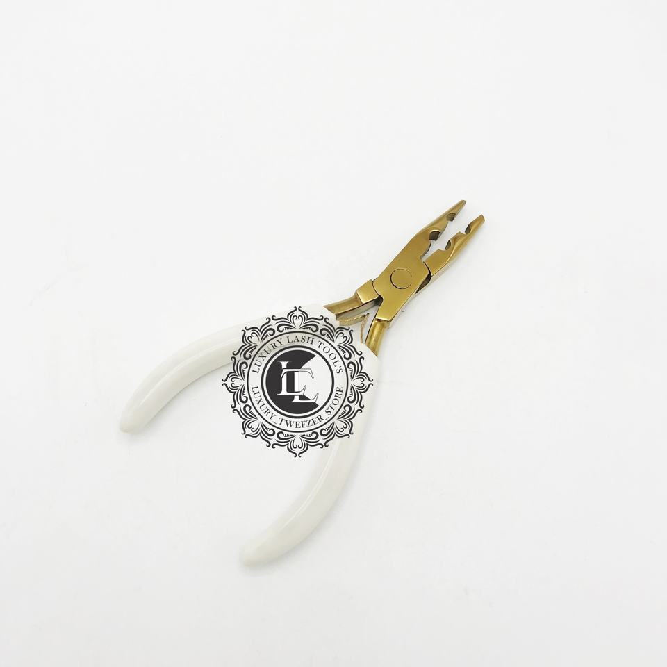Alicates de microextensión al mejor precio, empuñadura de extensión de cabello de doble orificio con opción de etiqueta personalizada con acabado blanco de plasma dorado