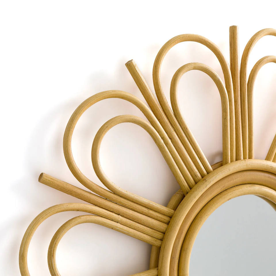Pared colgante de espejo de ratán Natural al mejor precio, nuevo diseño para venta al por mayor y decoración de interiores, estilo rústico bohemio RM07