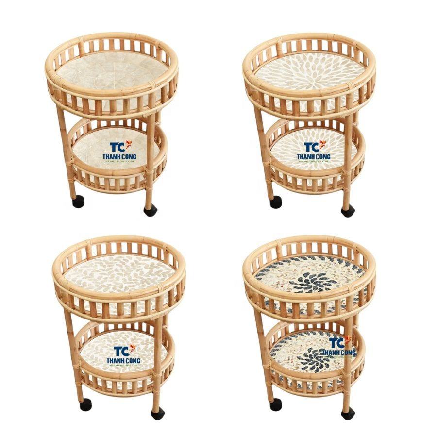 Carrito de compras de ratán al mejor precio, carrito de servicio de ratán tejido con estilo, uso versátil, carrito de barra de mármol, ruedas de ratán