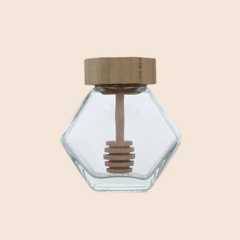 Palabra clave:Tarro de la miel con el palillo de madera de la miel