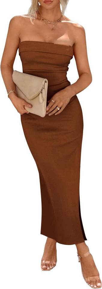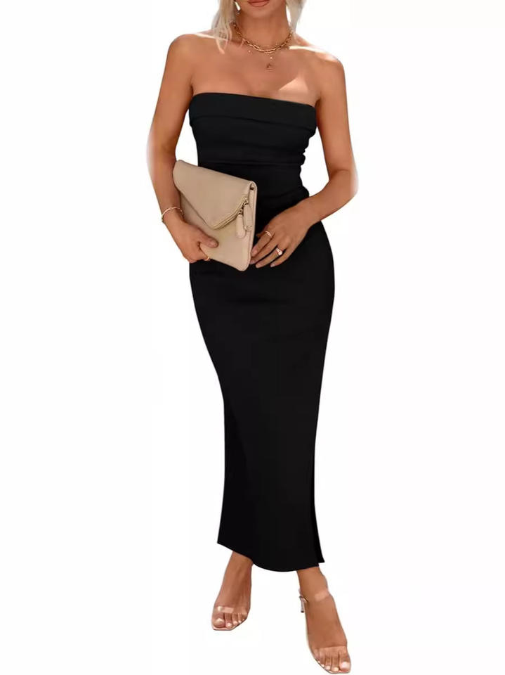Tipo:Ribbed Strapless Side Slit LongElegant Vestidos de Fiesta