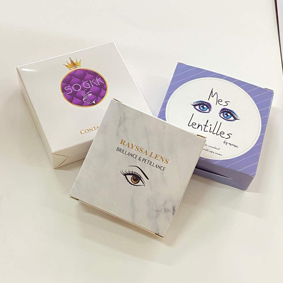 Mejor precio y bajo moq para lentes de contacto de colores, lentes puros, caja de paquete de maquillaje de alta calidad
