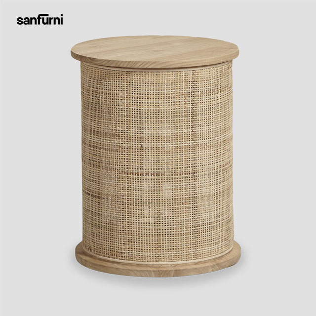 El Mejor Producto, mesa de centro de almacenamiento redonda, combinación de madera maciza y Ratán, mesa de centro multifunción, muebles de sala de estar