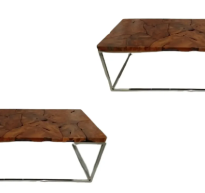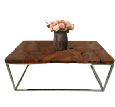 Mesa de raíz de teca 120 de la mejor calidad con patas de acero inoxidable para el almacén del hotel al aire libre-muebles de madera duraderos Indonesia