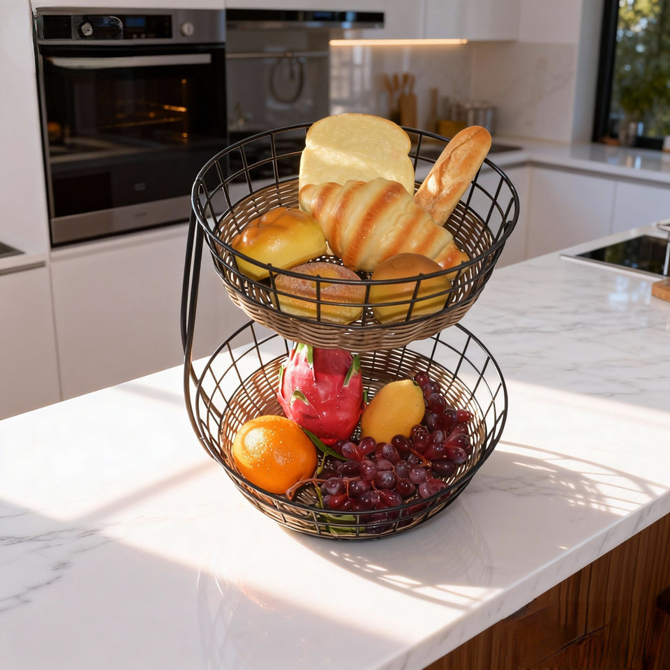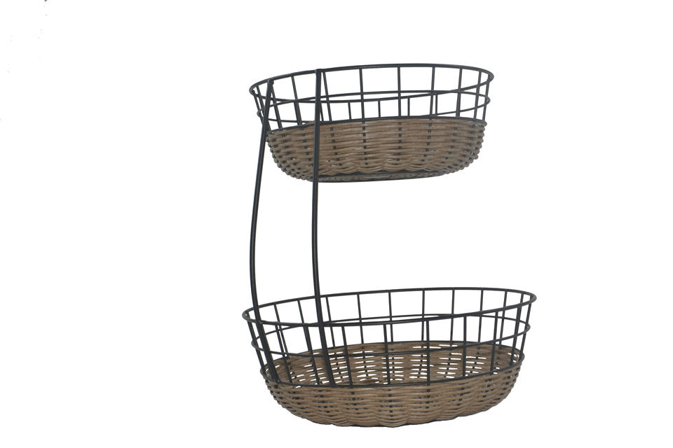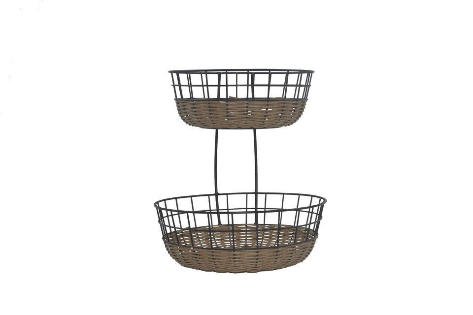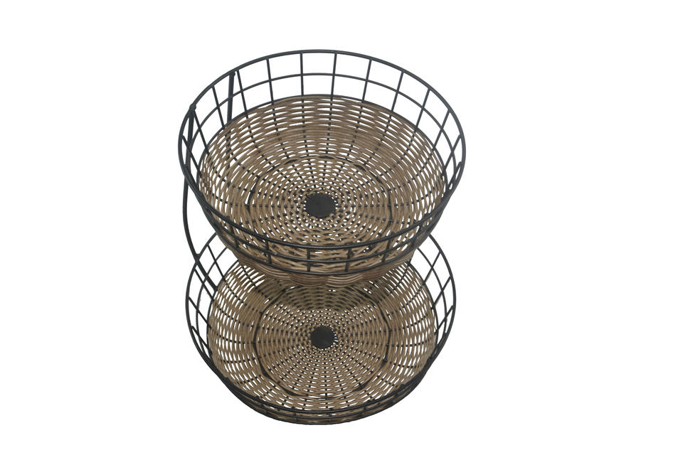 Cesta de mimbre para almacenamiento de pan de fruta de 2 niveles de la mejor calidad, cesta de mimbre tejida de alambre de Metal, Material PP, artículos diversos para alimentos