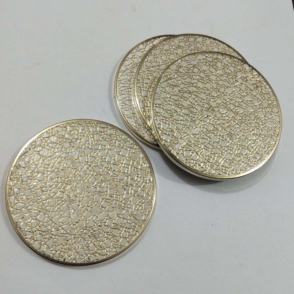 Juego de posavasos de 4 piezas de la mejor calidad, cuero Rexine punteado genuino, Las alfombrillas de Metal de pizarra de piedra más populares para bebidas de taza