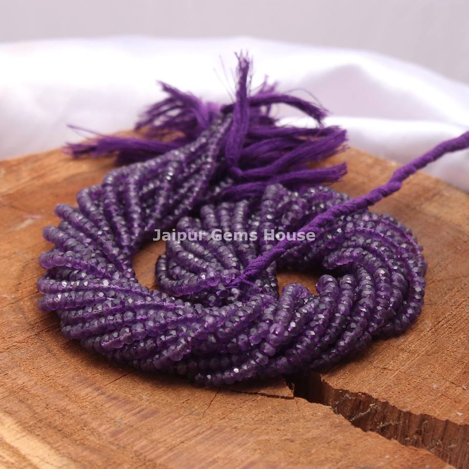 Collar de cuentas de piedras preciosas de cristal de amatista Rondelle facetadas de 4mm de la mejor calidad para la fabricación de joyas, cristal natural Suelto