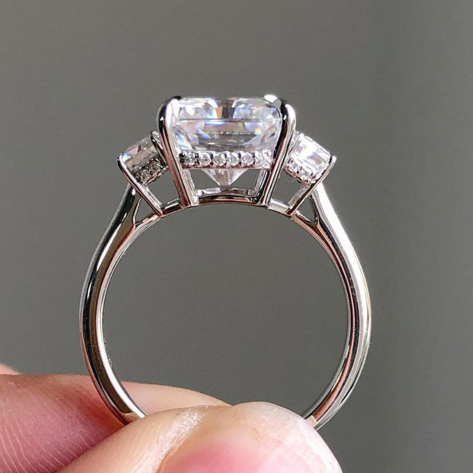Anillo original de diamante moissanita de corte radiante EF VVS de 5,10 CT de la mejor calidad, oro blanco de 18 quilates, chapado en plata y oro rosa, joyería elegante
