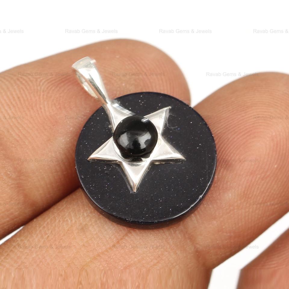 Nombre del producto:Black Onyx & Sunstone Silver Star Colgante