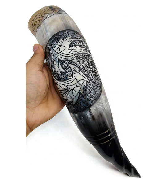 Taza de cuerno para beber de cerveza de ágata de estilo vikingo auténtico de la mejor calidad, soporte de hierro tallado, técnicas ecológicas, estilo Animal