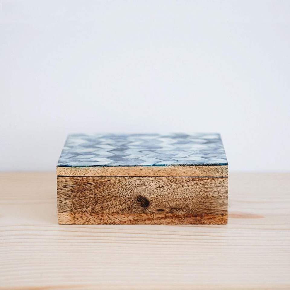 Caja de joyería de almacenamiento con incrustaciones de hueso de fabricante indio hecho a mano de Material de MDF azul de la mejor calidad
