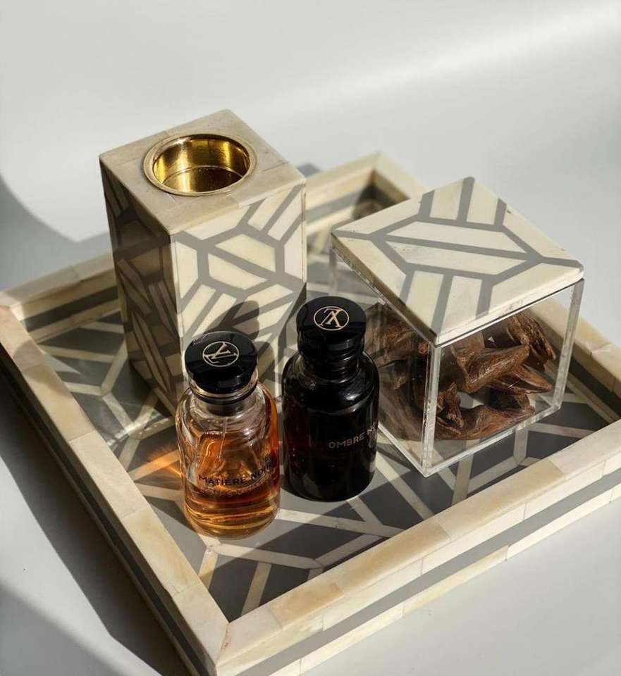 Juego de Posavasos de Madera con Incrustaciones de Hueso de la Mejor Calidad, Base Gris, 35x35x3.75 CM, para Uso en el Hogar y Hoteles, Calidad Árabe Mubkhar
