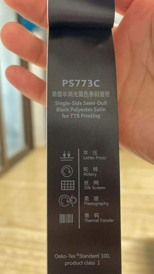 Cinta de Satén de Poliéster Negra de la Mejor Calidad para Impresión de Códigos de Barras TTR, Lavable, para Textiles, Impresión Rotativa Flexográfica, Impresión Offset TTR