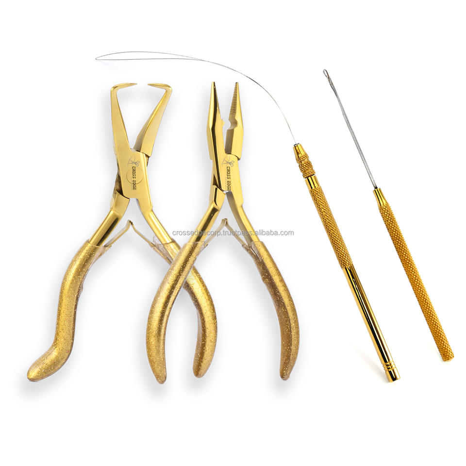 Kit de extensiones de cabello con Clip de acero inoxidable de la mejor calidad, alicates de microcuentas, removedor de cinta, bonito acabado, logotipo personalizado, estilo rizado