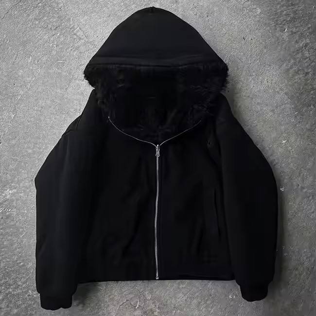 Sudadera con Capucha Personalizada Unisex Ligera de Secado Rápido y Transpirable de Seda/Algodón, Chaqueta Reversible Tipo Parka de Invierno, Abrigo Negro con Cierre
