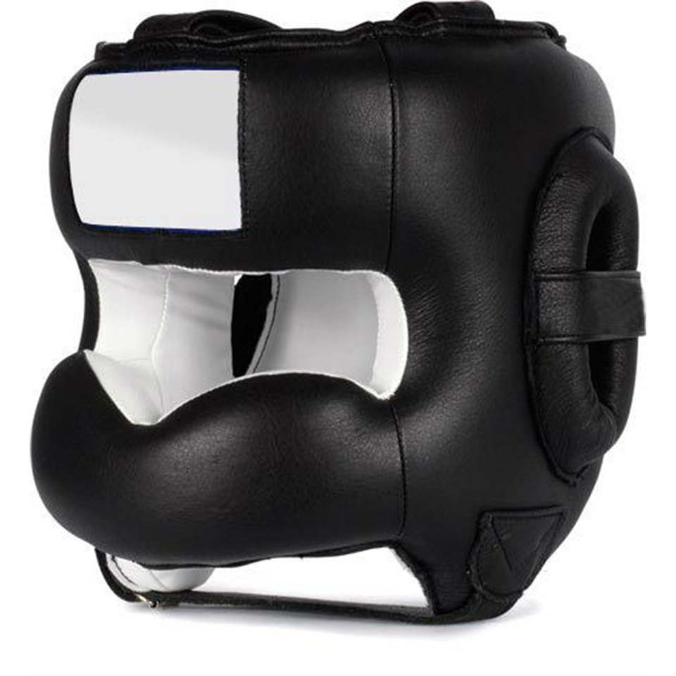 Protector de cabeza de cuero vacuno de la mejor calidad con logotipo personalizado para boxeo y artes marciales con espuma gruesa que absorbe los impactos