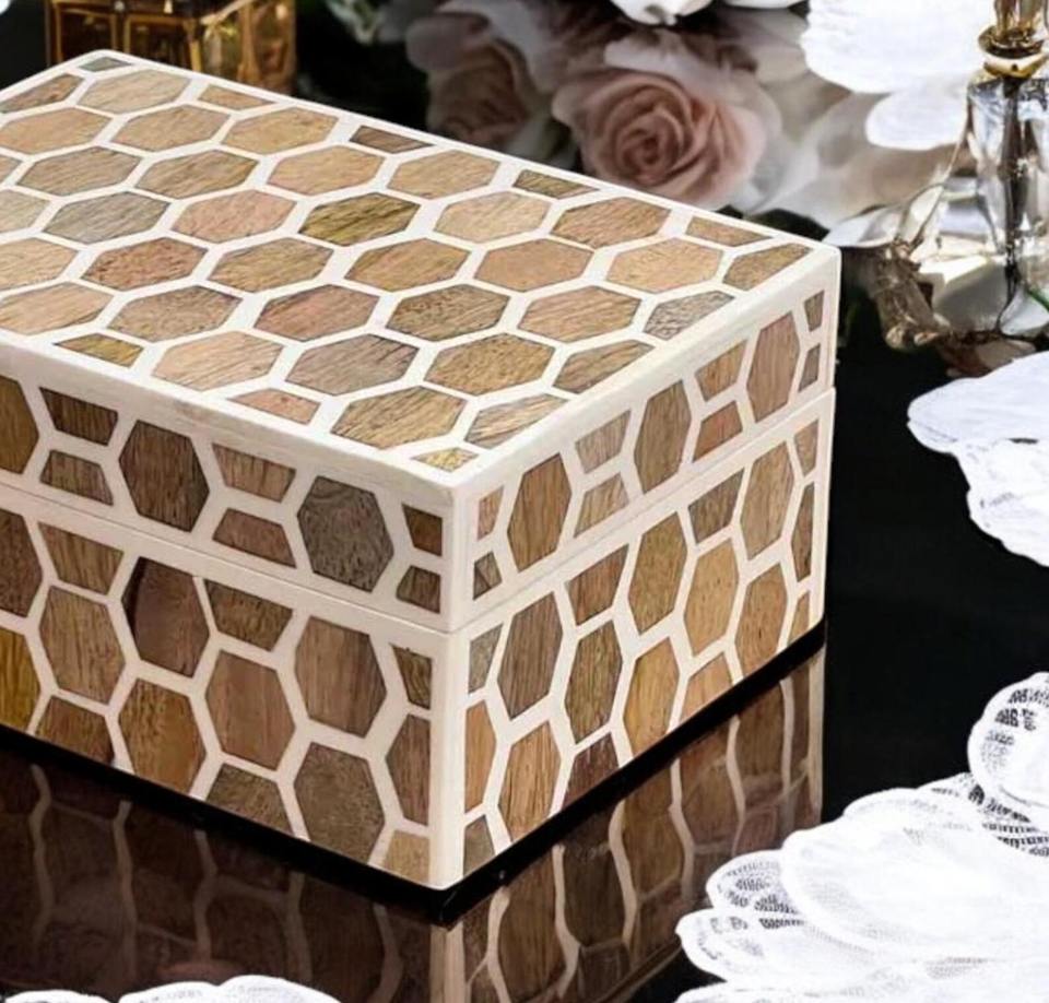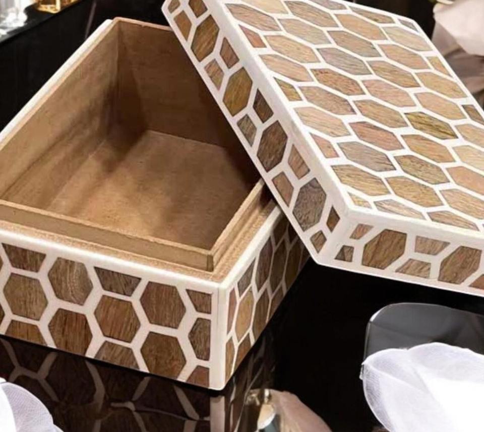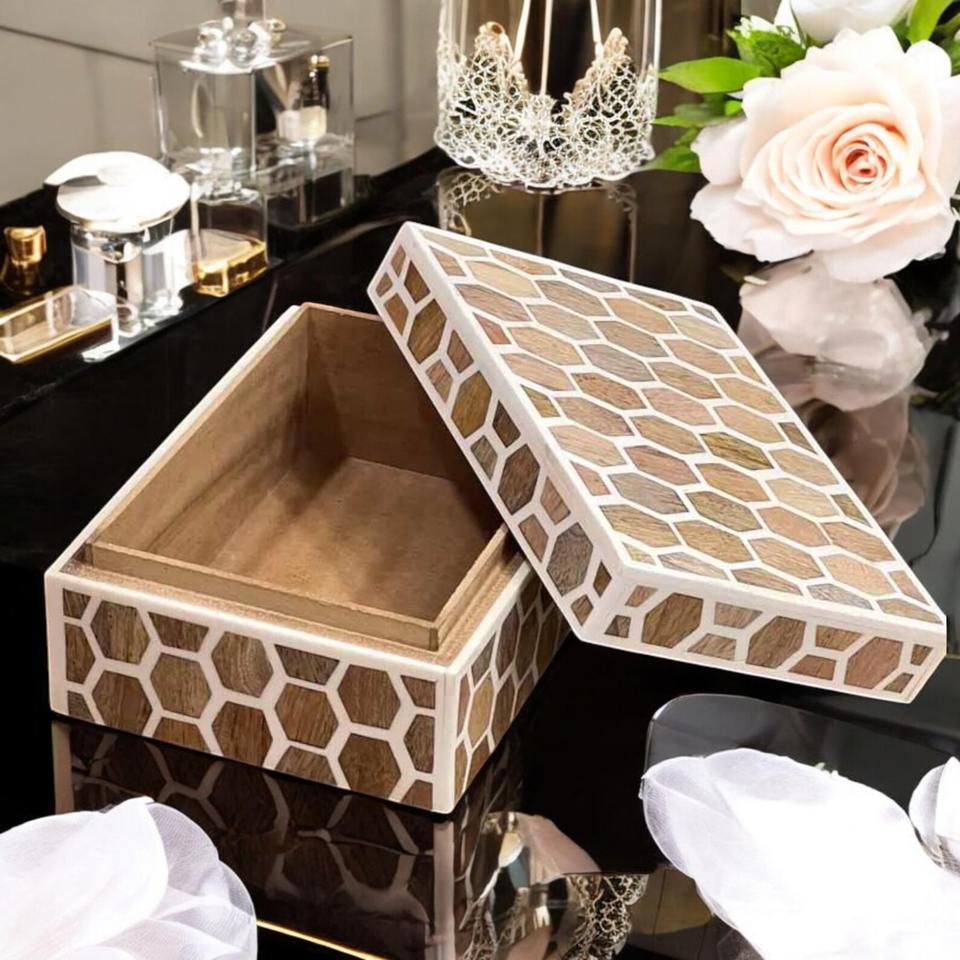 Caja de almacenamiento decorativa con incrustaciones de hueso rectangulares de diseño personalizado de la mejor calidad, patrón cuadrado, mayorista directo de India para exportación