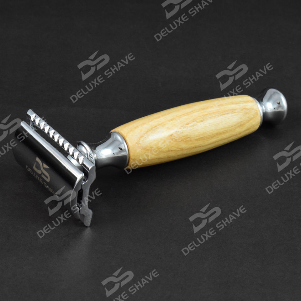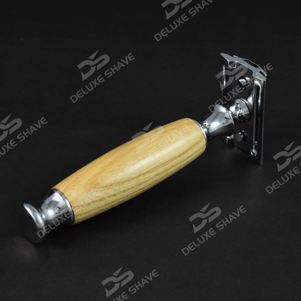 Maquinilla de afeitar de seguridad de doble filo de la mejor calidad para hombres, afeitadora manual con mango de madera de Fresno natural