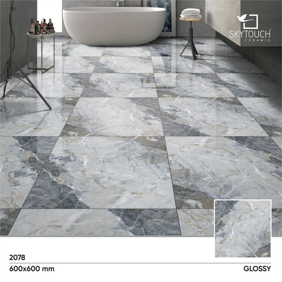 Azulejos de Porcelana de Doble Carga de la Mejor Calidad, Porcelanato Pulido Eleganza Blanco Gris, Marca SKYTOUCH, Garantía de por Vida