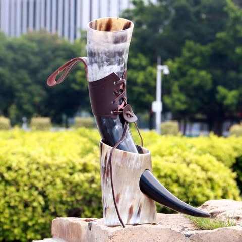 Soporte de cuerno para beber vikingo ecológico de la mejor calidad, Funda de cuero de Ángel Animal pulido, soporte de cuerno decorativo al por mayor