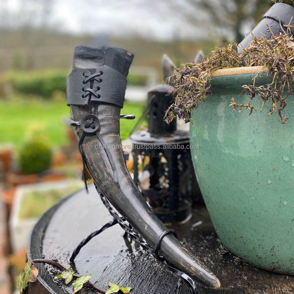 Cuerno Vikingo para Beber de Primera Calidad, Ecológico, con Soporte, Cuerno de Búfalo, Diseño Moderno, para Fiestas de Vino
