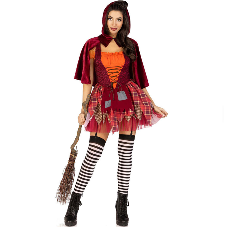 Disfraz de Bruja Caperuza Roja de Alta Calidad para Halloween, Capa de Cosplay para Halloween
